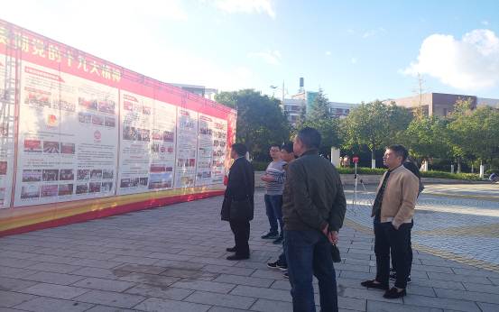 为加强党的十九大精神学习与宣传,2017年11月21日上午,云南艺术学院文华学院学生处、保卫处工作人员在学生处处长兼保卫处处长高兴盛老师的带领下参观学习了云南经济管理学院不忘初心,继续前行,学习宣传贯彻党的十九大精神展板,展板分为十一部分,分别阐述了经管院学习宣传贯彻党的十九大精神的相关活动以及相关内容。