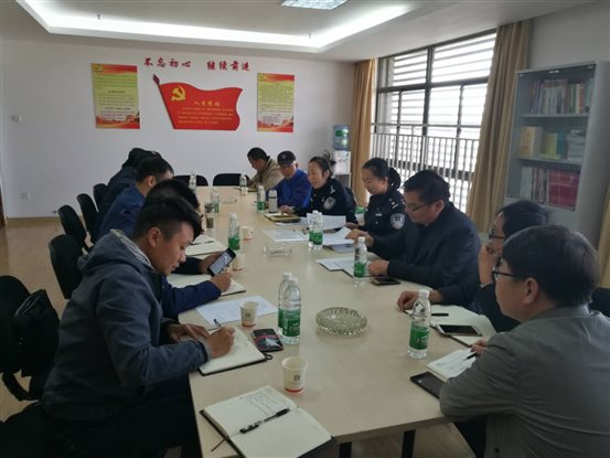 会议上,昆明市公安局经文保分局於珈羽警官和职教园区石江派出所丁所长对全国”两会“期间校园安保维稳工作作出了要求。