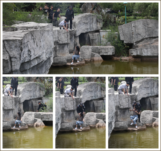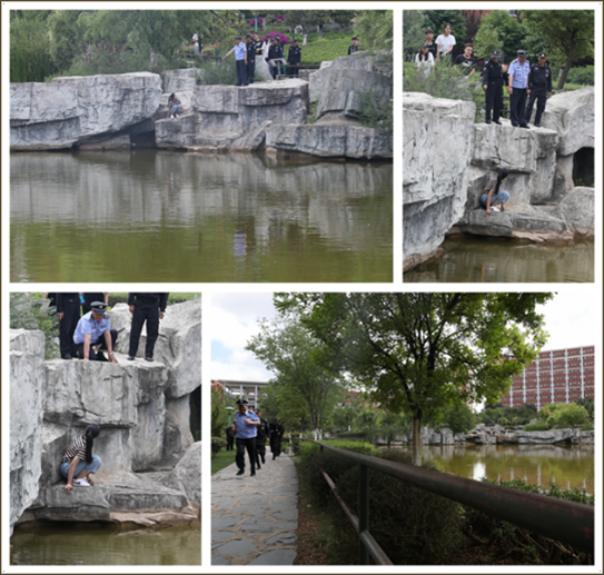 2018年5月26日上午10时保卫处接到一名同学报告,主诉发现一名女同学翻越扶栏出现在人工湖边,目光呆滞、有跳湖嫌疑。
