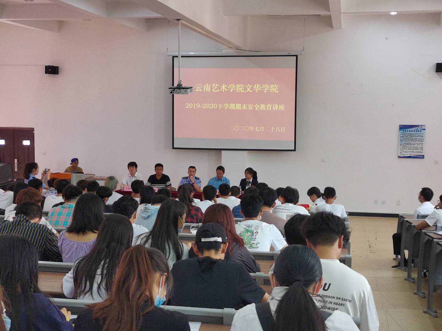 为切实做好学校2019-2020学年下学期期末及暑假期间安全教育工作,进一步加强警校联动机制。学校特邀昆明市公安局阳宗海风景名胜区分局七甸派出所副所长(学校法制辅导员)陈杰、七甸农村信用社主任甘雨青,于7月28日12:30在亦归楼E103阶梯教室为我校师生开展2019-2020学年下学期期末安全教育讲座。学校副校长李劲、保卫处处长李海平、学工处处长高兴盛、后勤处处长白龙、学工处副处长张丞艳,及各二级学院师生代表200余人参加了此次讲座,讲座由学工处处长高兴盛主持。