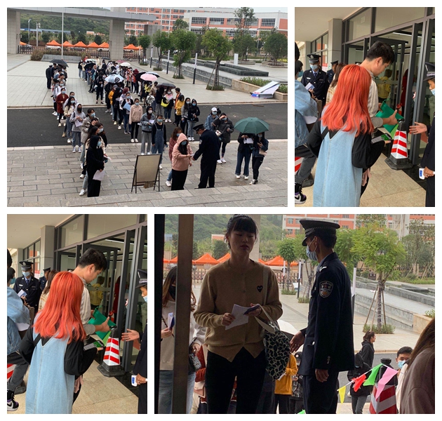 针对部分考生突发疾病、忘带证件、口罩、走错考场的实际情况,保卫处及时启动校园疫情防控安保工作应急预案,及时调派校园巡逻车、电动摩托巡逻车提供服务,保证考生按时顺利参加考试。