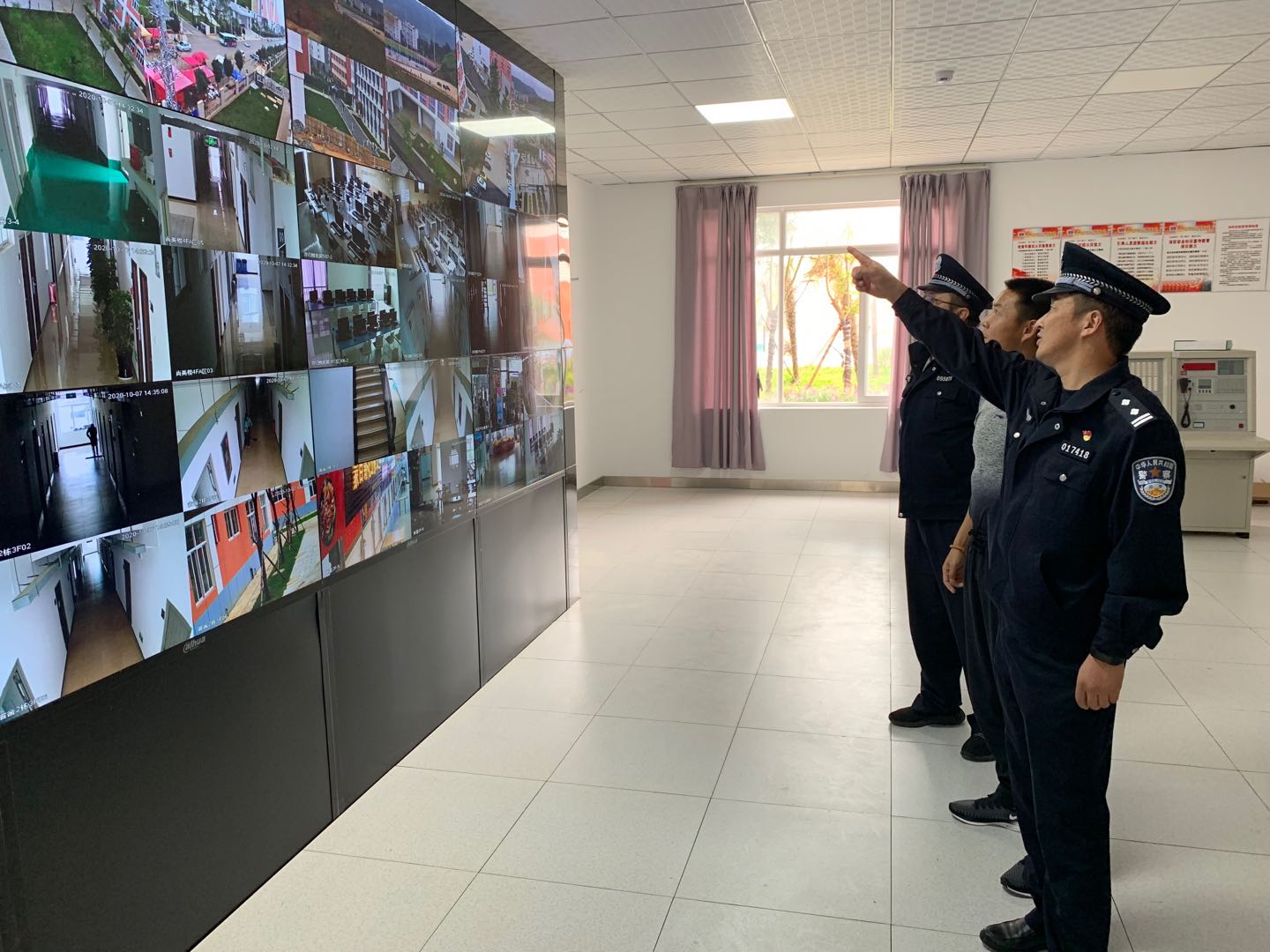 此次重点检查了校园内部保卫力量,安全防范机制、应急处突、查看校园视频监控系统,对校园各区域摄像头安装是否合理、监控范围是否存在盲区等情况进行了检查与交流。交流中杨学祥处长谈到,要强化疫情防控综合征新形势下校园内部安保力量,配备必要的防护装备,做到人防、物防、技防措施完善,加强与属地派出所“校警联动”对在校园周边游荡、形迹可疑的人员及时报告派出所,防止发生意外事件。