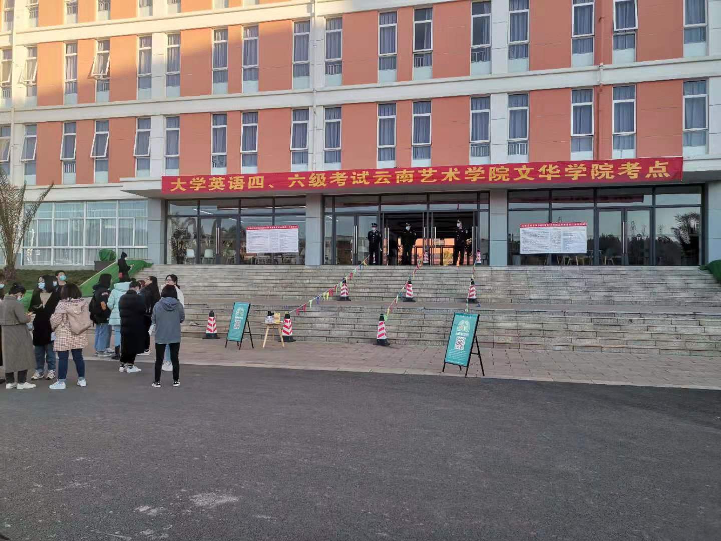 全体执勤人员在大学英语四、六级及本科英语应用能力云南艺术学院文华学院考点,安全保障工作中尽职尽责、热情服务、暖心助考,得到了领导、相关部门和学生的一致好评,圆满完成了本次安保服务工作。