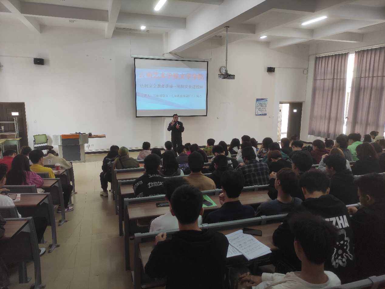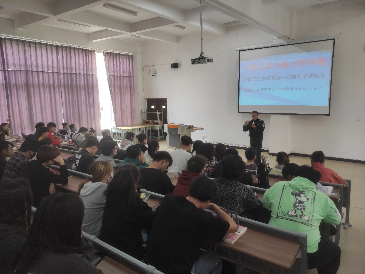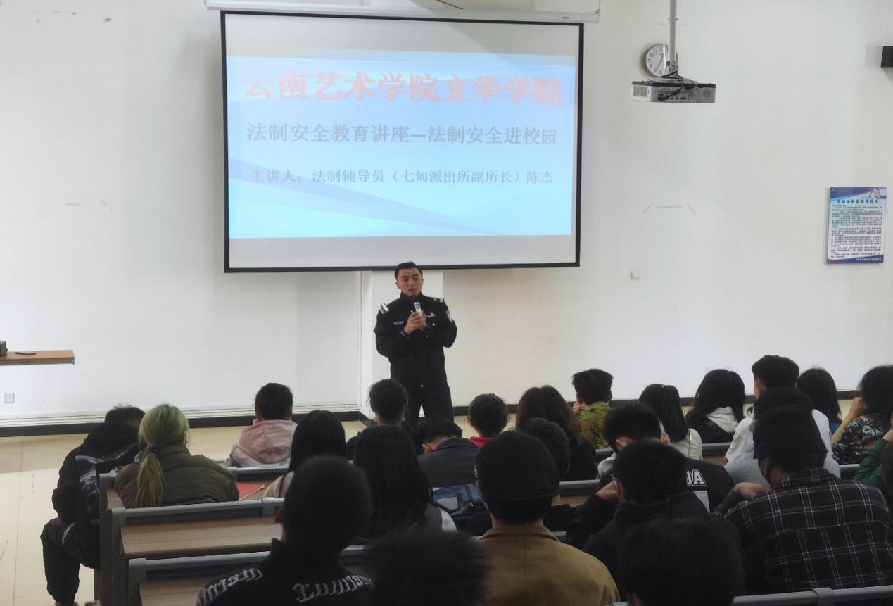 为认真贯彻落实昆明市公安局经济文化保卫分局文件《关于进一步做好防范电信诈骗宣传工作的通知》文件精神,结合我校《云南艺术学院文华学院关于预防电信诈骗工作实施方案》,云南艺术学院文华学院联合属地七甸派出所进行为期9天的法制安全教育讲座,此次活动面向学校五个二级学院2019级2000余名同学及年级辅导员进行宣讲。
