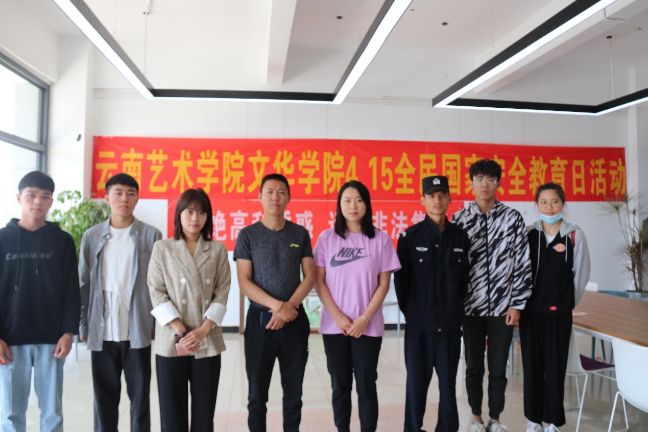 2021年4月15日是我国第六个全民国家安全教育日,为了在师生中广泛宣传国家安全相关知识,增强师生国家安全意识,自觉履行维护国家安全,保守国家秘密的义务。云南艺术学院文华学院团委、保卫处、学工处联合昆明市阳宗海管委会、政法委、昆明市公安局阳宗海分局、治安大队、七甸派出所、交警大队、税务,在我校开展了一系列安全教育活动。