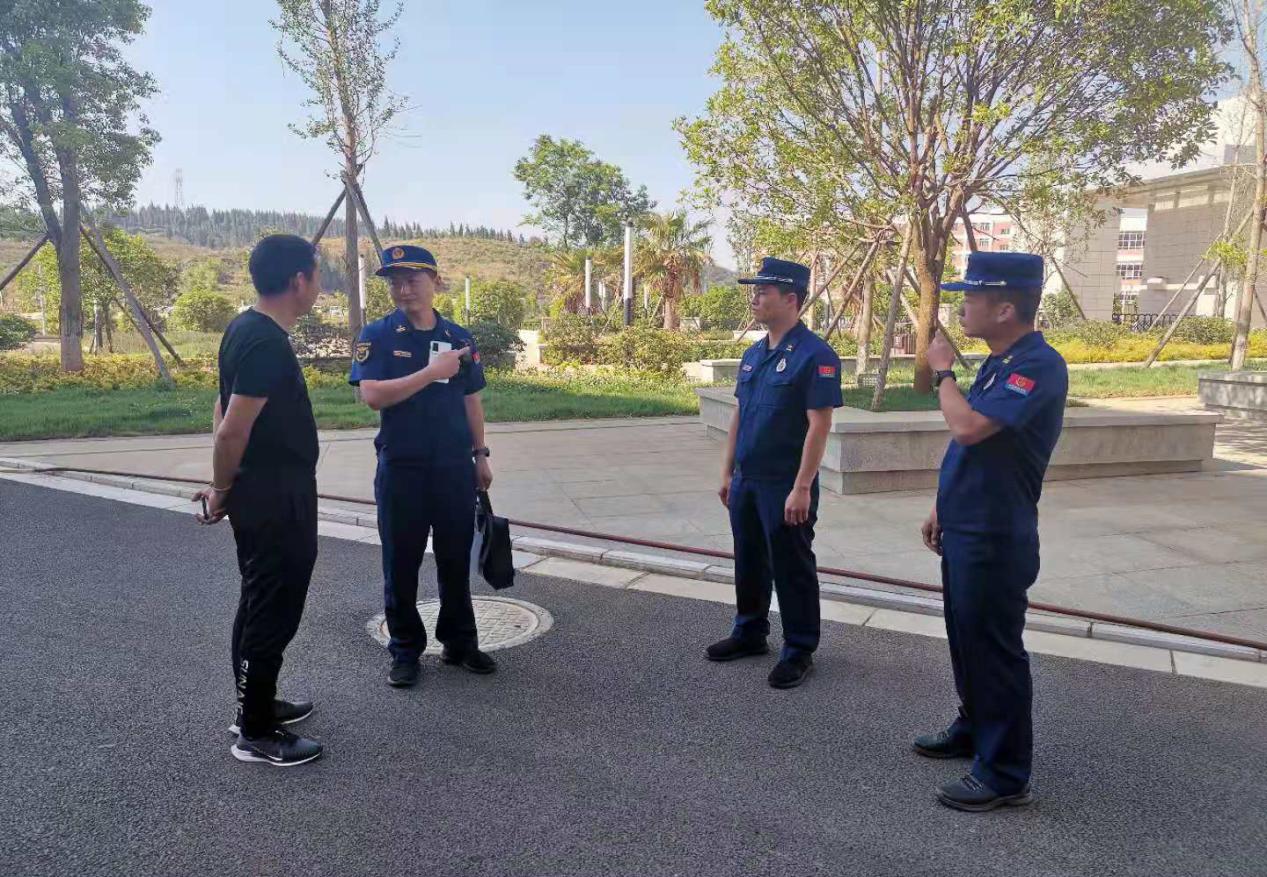 2021年4月23日上午9时30分,阳宗海消防救援大队黄刚参谋带队到校开展消防安全检查与指导工作,保卫处处长李海平携保卫处人员陪同检查。