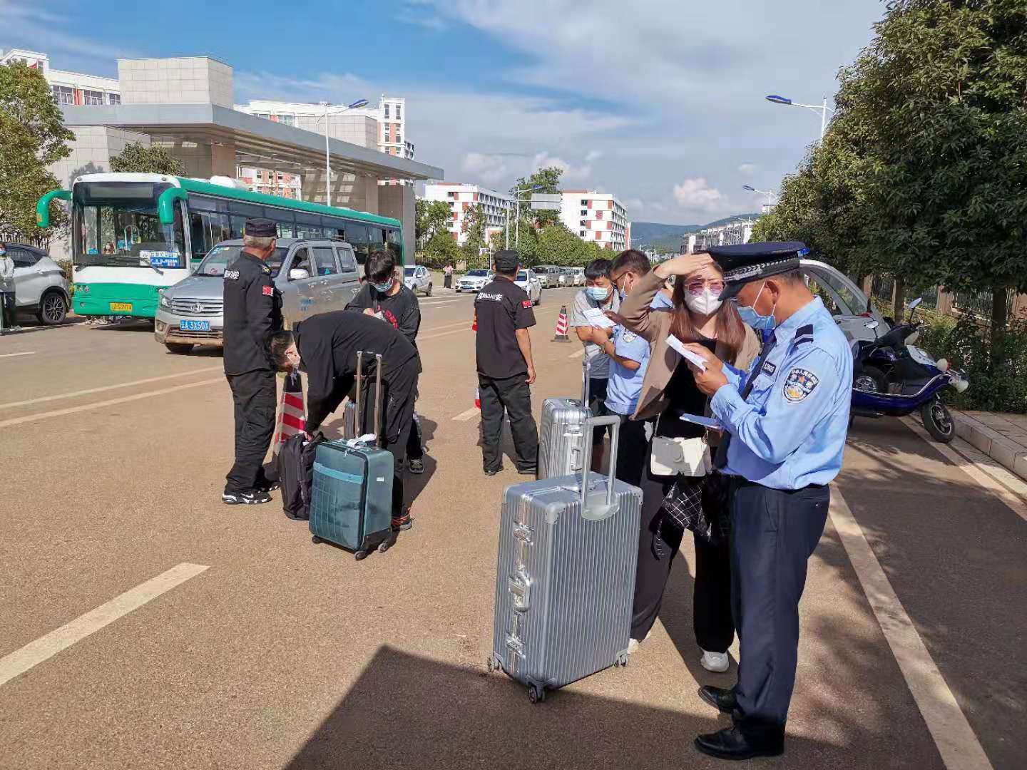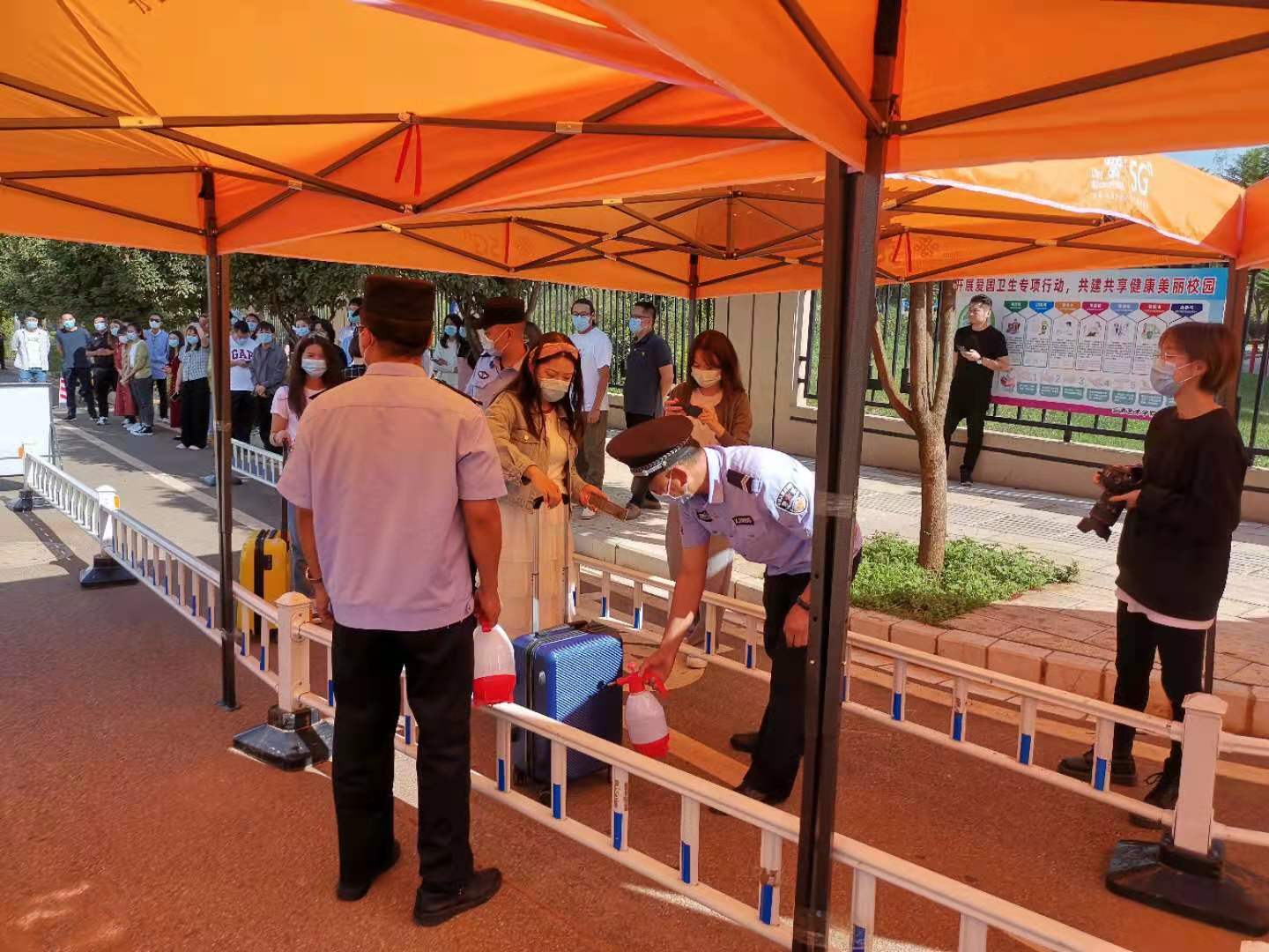 8月26-27日,符合报到条件的学生顺利返校,保卫处严格执行身份核验、个人核酸检测报告查看、扫码、体温测量、行李消毒等程序,达到学生身份核验全覆盖,体温检测准确高效,服务学生热情到位的工作目标,与属地公安机关密切配合开展联防联控,学生返校工作井然有序,安全平稳。