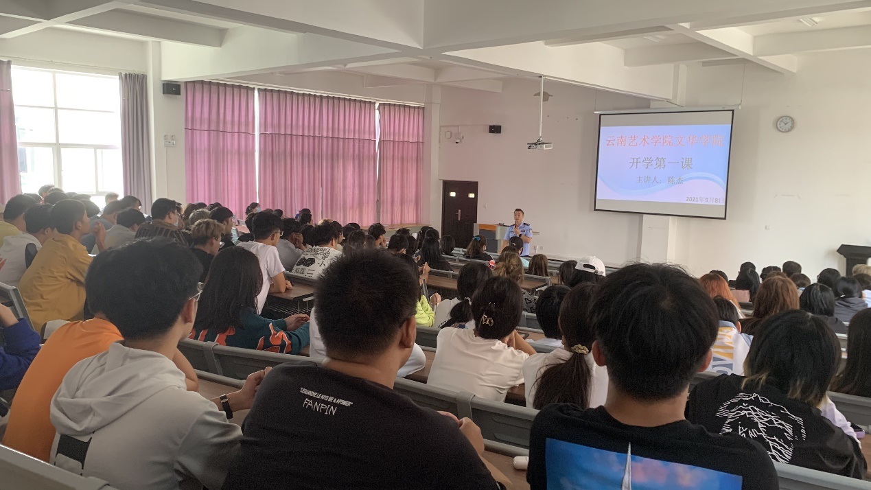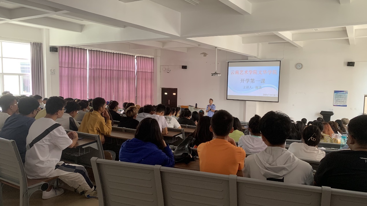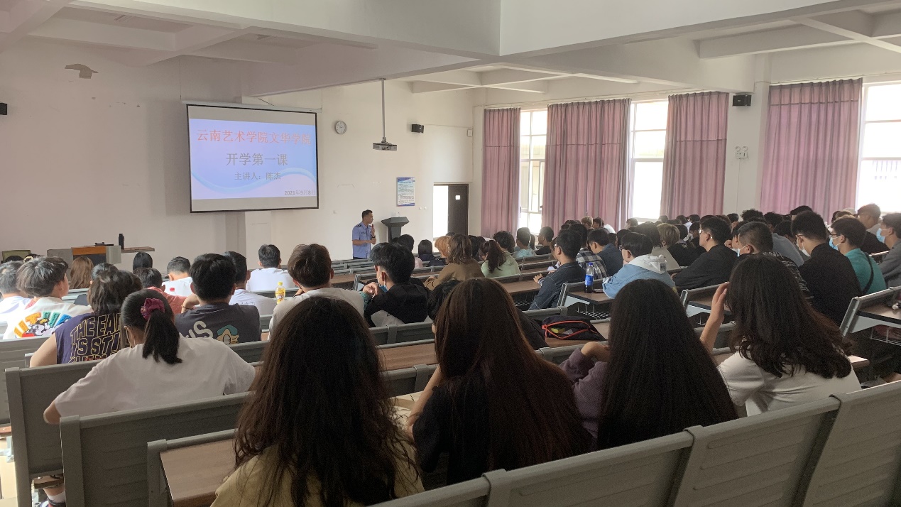为进一步增强2021级新生的法制观念、强化法制意识,9月8日,七甸派出所副所长陈杰(学校法制辅导员)利用学校开学之际,走进文华学院,为2021级新生开展全方位、多层次的法制安全教育。