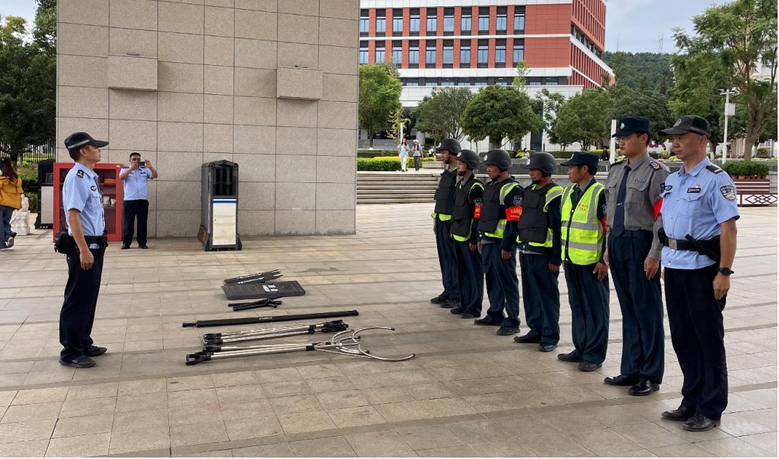 为深化警校联动机制,切实提升校园安保力量应急处突能力,筑牢校园安全防护网。2025年9月25日,七甸派出所所长魏育平与多名民警走进昆明传媒学院,为全体保安队员开展反恐防暴专项培训及实地演练活动。